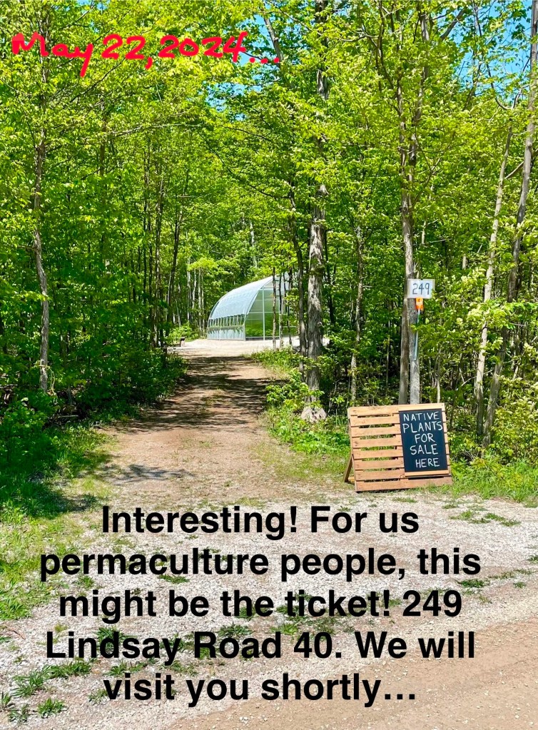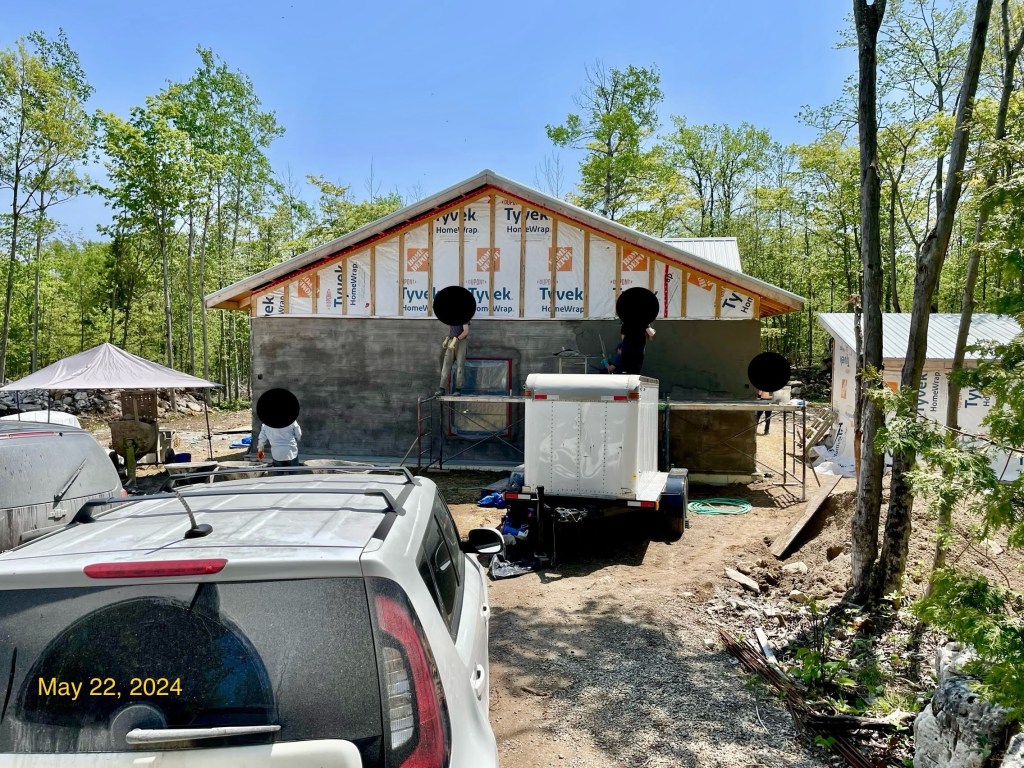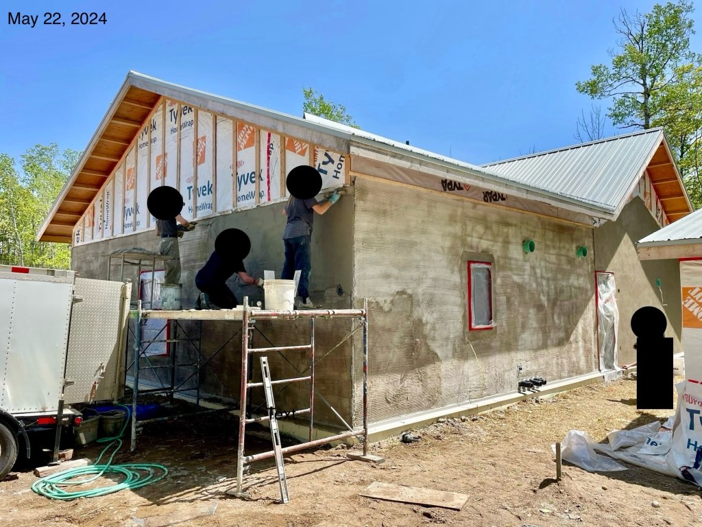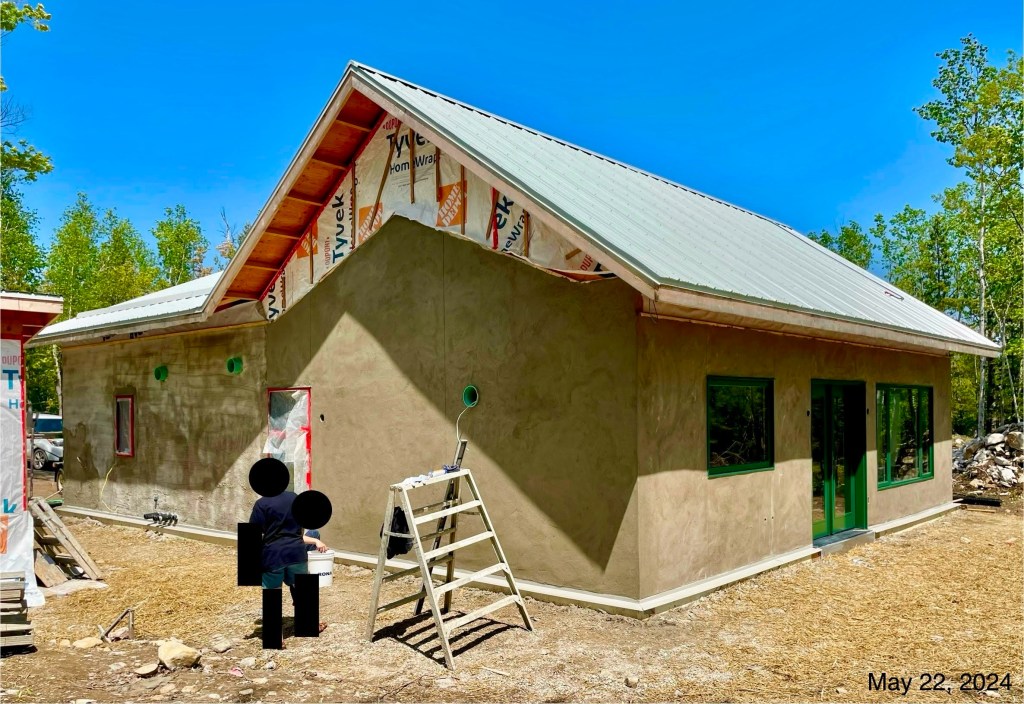 At the Crane Lake Road & Lindsay Road 40 intersection.Our neighbours.2nd coat being applied to the NNE wall. Intense sun, eh.2nd coat applied, from the SE perspective.2nd coat applied, from the south perspective.TS marvelling at FARM-MAN’S finesse work, on the SW corner.This is some SERIOUS cardiovascular exercise, being accomplished by our straw-bale crew! NW point of view.North face.Evolve Builders, this is some promising work. Updated: 16:50 EST, May 22/24 by PN.