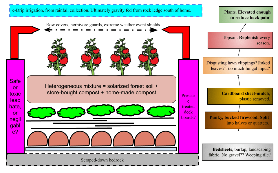 And my meditation doesn’t have to be all cerebral! I can mow the (rental house) lawn. I can pick my way through the bush on my woodlot’s property lines. I can hand-buck logs (using my Swede saw and/or Japanese Silky GomBoy) and split them for firewood or as a base for hugelkultur.