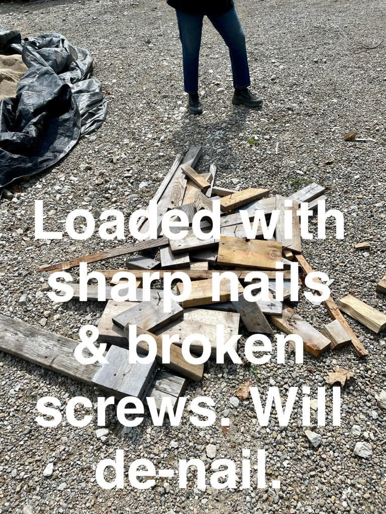 Monday, August 19 2024. PN finds it a lot less stressful working with TS at the construction site. He enjoys the labour. She enjoys fitting board ends together for firewood and re-use. Both of us like making order from chaos.