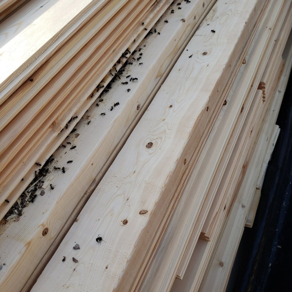 Lesson #5. Install insect and vermin barriers. This bunkie is a mass of delicious, kiln-baked pine, wrapped in a predator-resistant wrap from the factory. After the bunkie’s assembled, landscaping fabric (galvanized metal mesh, ~0.5 cm squares) and flashing will be added as a skirt. Learn more about carpenter ants here! 🙂