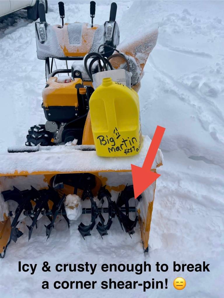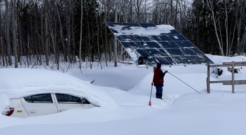 MH from Evolve Builders came up and repaired the tile cracks in the shower. The door latch was an easy fix. Avenir Energy installed 2 addition propane bottles, so we now have a quartet of pressure containers in the bush (feeding GENNY-GENERAC). TS made savory pastries using the infamous butter crust (butter crusts are unforgiving and can lose all of their flakiness if overworked [when they DO work, the texture is unique]). TS is getting very proficient at clearing PV panels. Which is good because I had to spend extra time clearing icy and crusty snow off our driveway. The snow’s consistency is so awful, it overstressed a shear-pin on BIG MARTIN’s auger assembly. On the plus side, my snowshoes allow me to float on top of the drifts in the bush (I sink up to my waist like a clueless moose if I don’t wear ’em).
