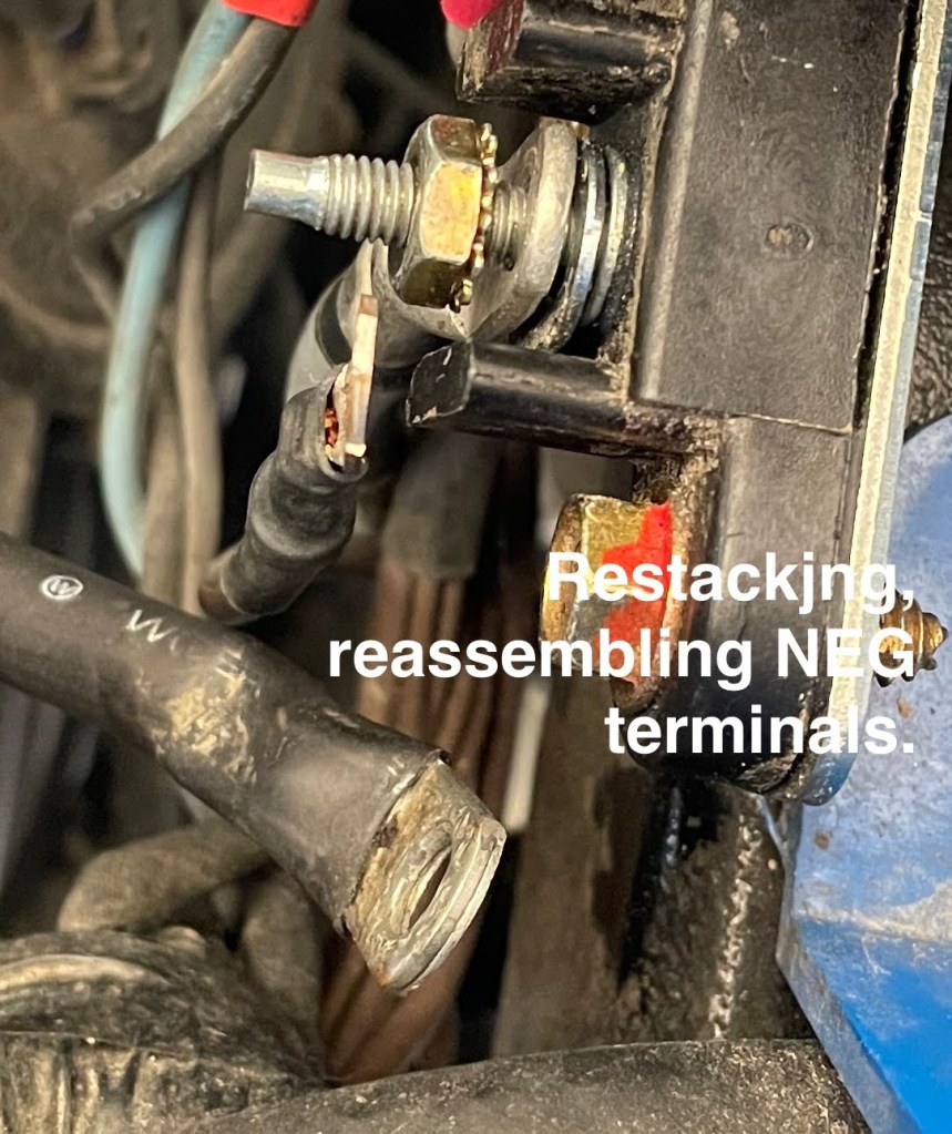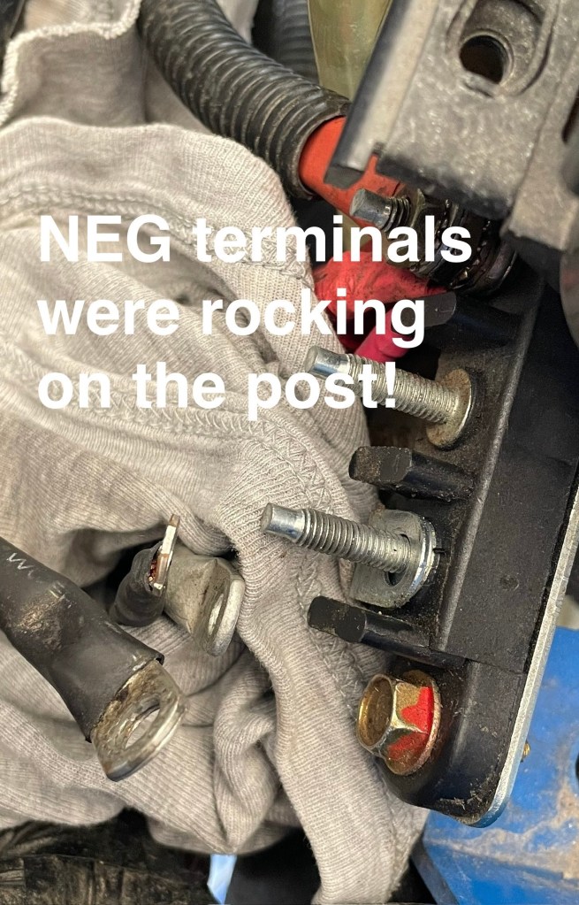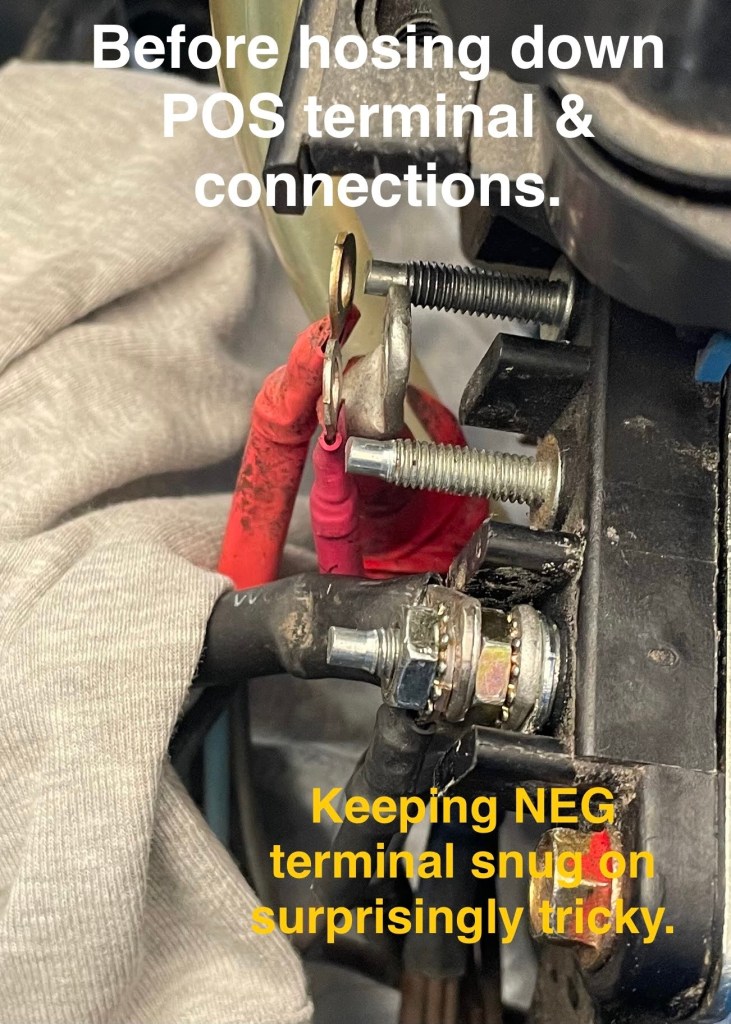 - The electrical distribution posts are dirt magnets. Clean them up. They’re also very easy to jog loose, despite having some integrated star-washer-nuts. As soon as I finished servicing the POSITIVE posts, the adjacent NEGATIVE connections loosened up. Periodically re-snug the connections.