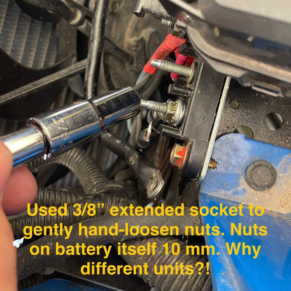 - Work methodically. Don’t even think about doing this work with the battery still in place (I didn’t do it and let a wrench cross the connections [sparks and the tool became hot to the touch).