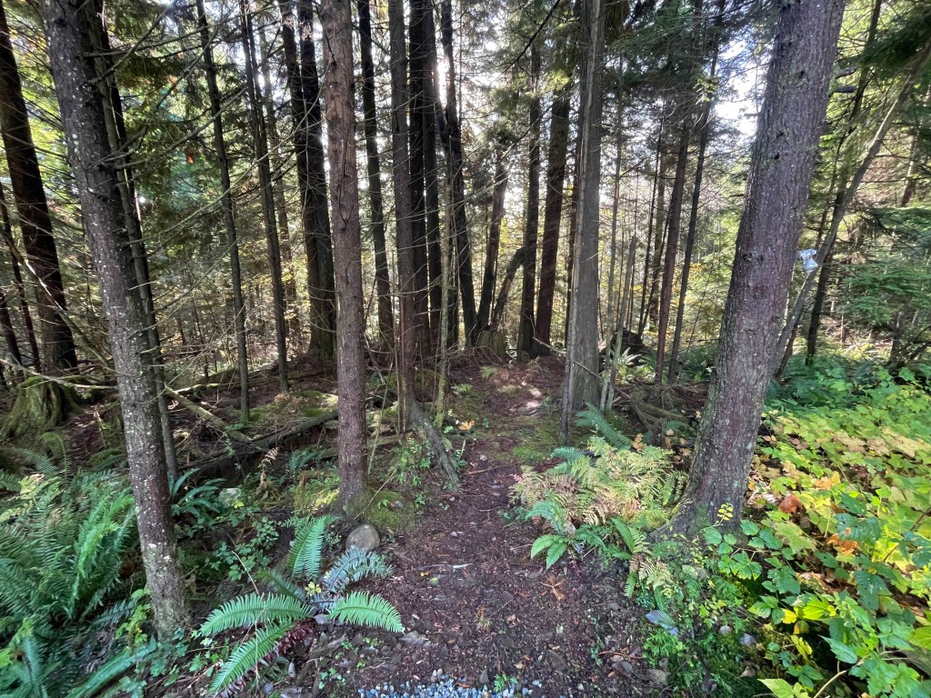 I marveled at how my brother-in-law has carefully landscaped the lot and added a fantastic trail at the bottom of the hill. He has made a stunning property that is DRAMATIC when you enter past the upper gate.
