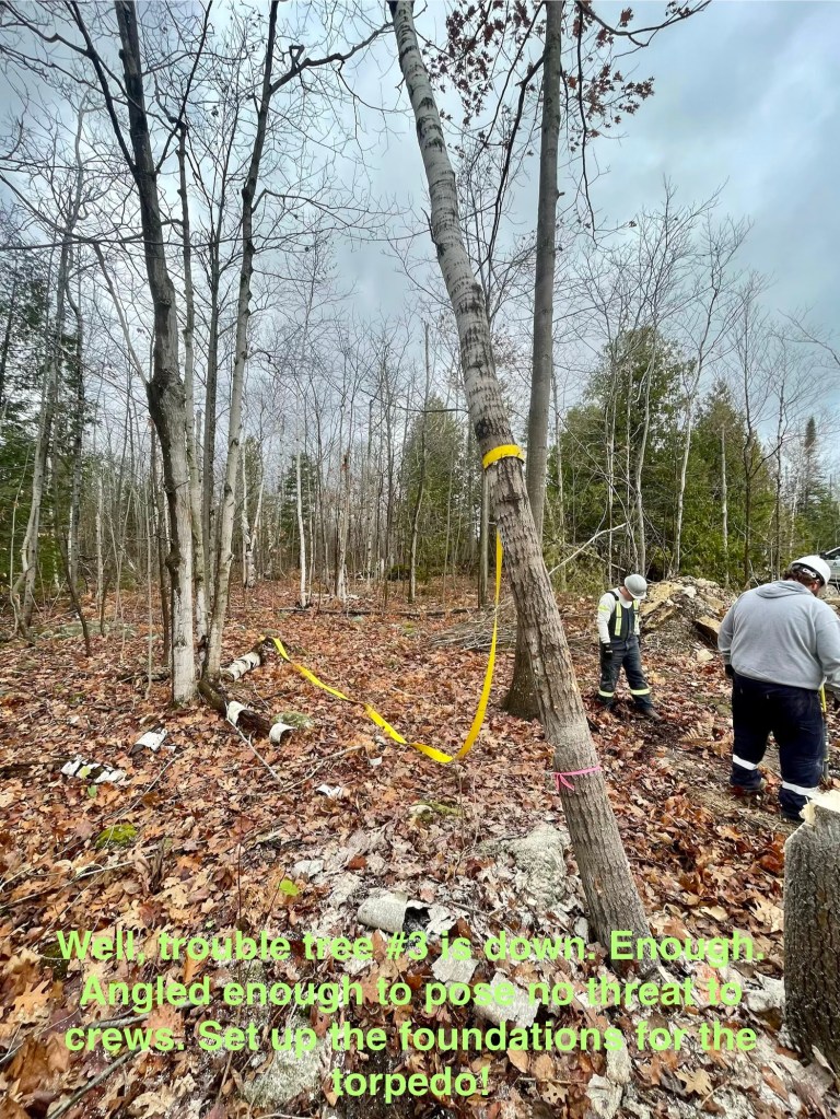TS was empowered. Avenir Energy’s crew watched me do my thing with respect. TS enacted her OVERWATCH commands by stopping me from wasting time with the leaning-tree-of-stupid… to me to stop fighting with tree #3… assure me it was good enough… and get the Avenir crew back online.