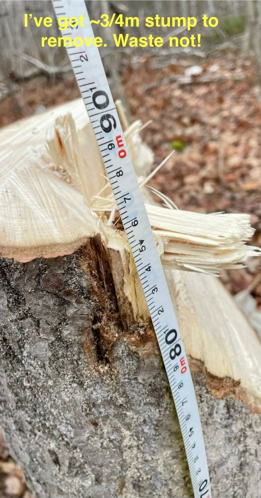 I now know what additional equipment (2-3000kg marine mooring braided line) and resources I’ll need to acquire for more dangerous trees south of our home… including asking my neighbour MS to provide auxiliary spotting services.