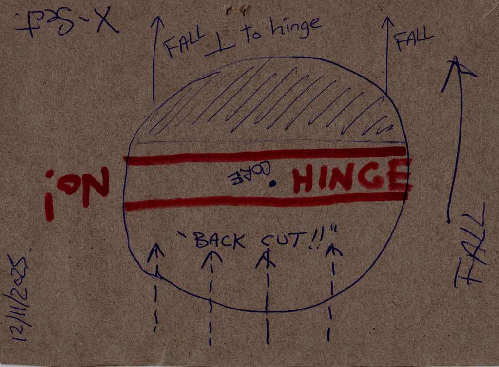 When PN is thinking and in the right headspace, he PLANS THE CUT JOB. He doesen’t deviate from the plan. PLAN THE CUT & CUT TO THE PLAN. Chainsaw work is exhilarating and fucking awesome. And poor planning or sloppy work can kill, maim and/or destroy my world.
