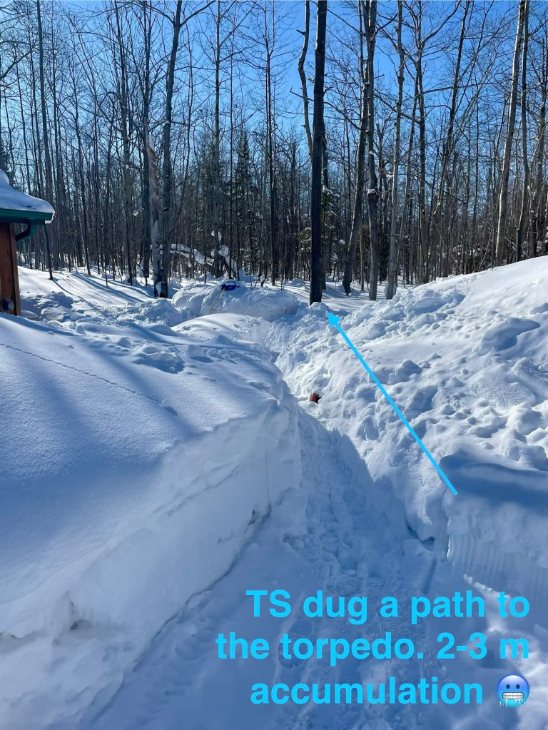 03/01/2026 until 04/01/2026… and every couple of days now! We’re clearing up to 60 cm of powdery white stuff off the pathways, around the building skirt, around GENNY-Generac (the generator), the torpedo, and to the outbuildings and ground-mounted photovoltaic panel.