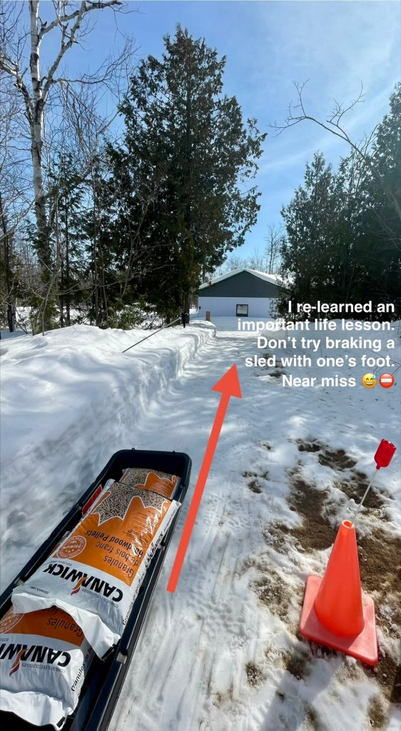 03/04/2026. SAFETY REMINDER. (40 lb fuel bags)(5 bags) = a really fucking heavy sled. PN = 100% should have known better.
