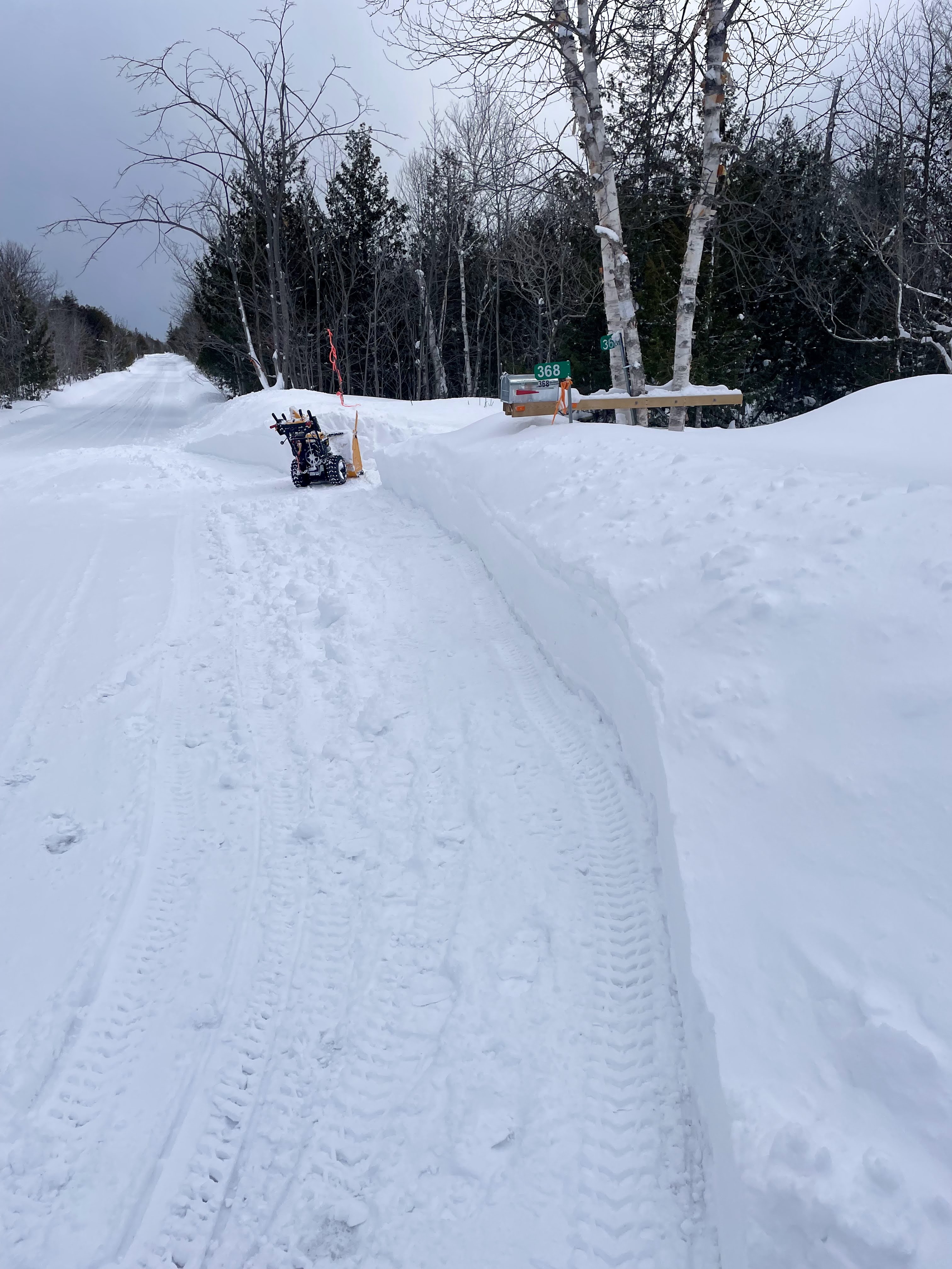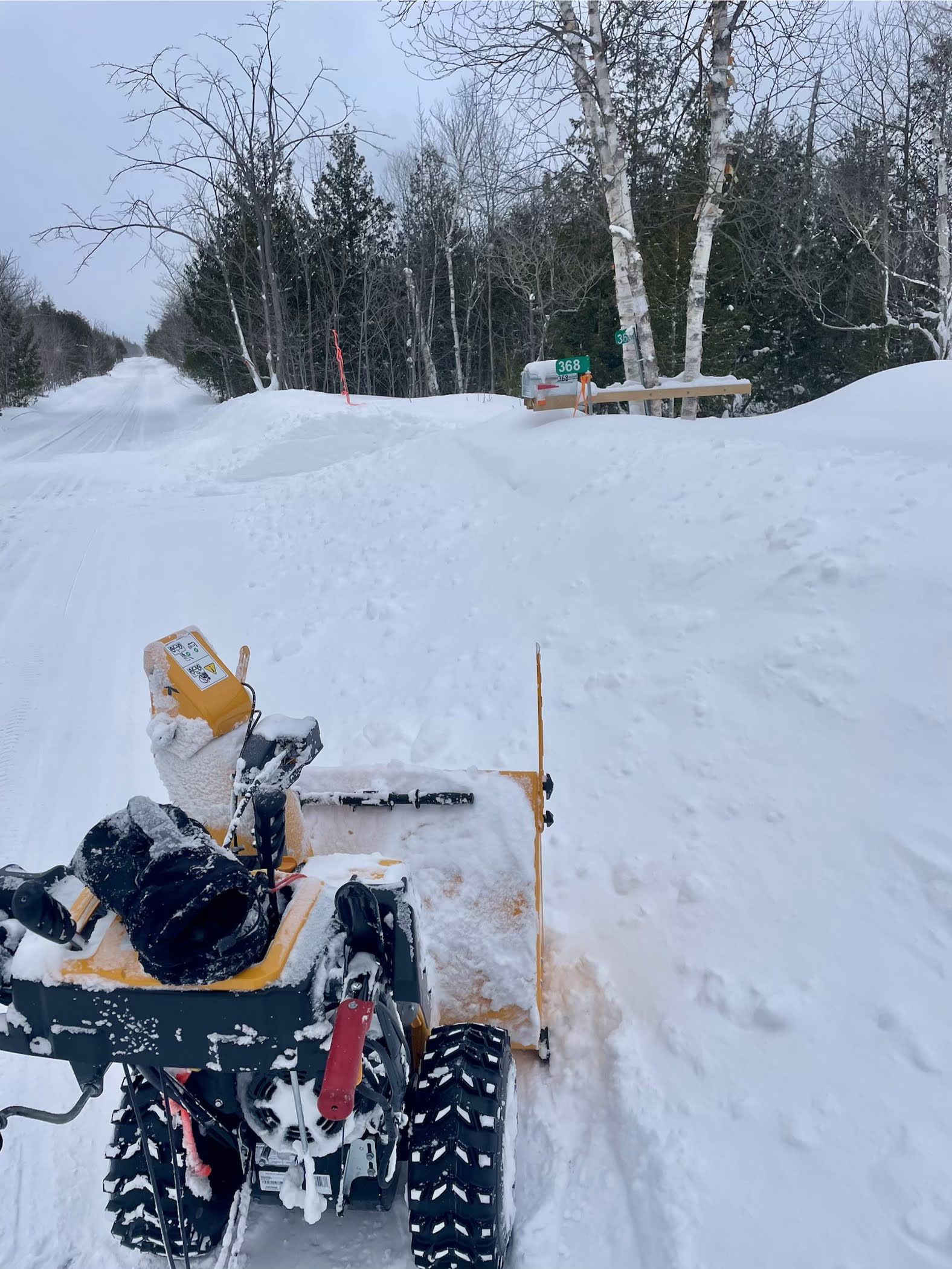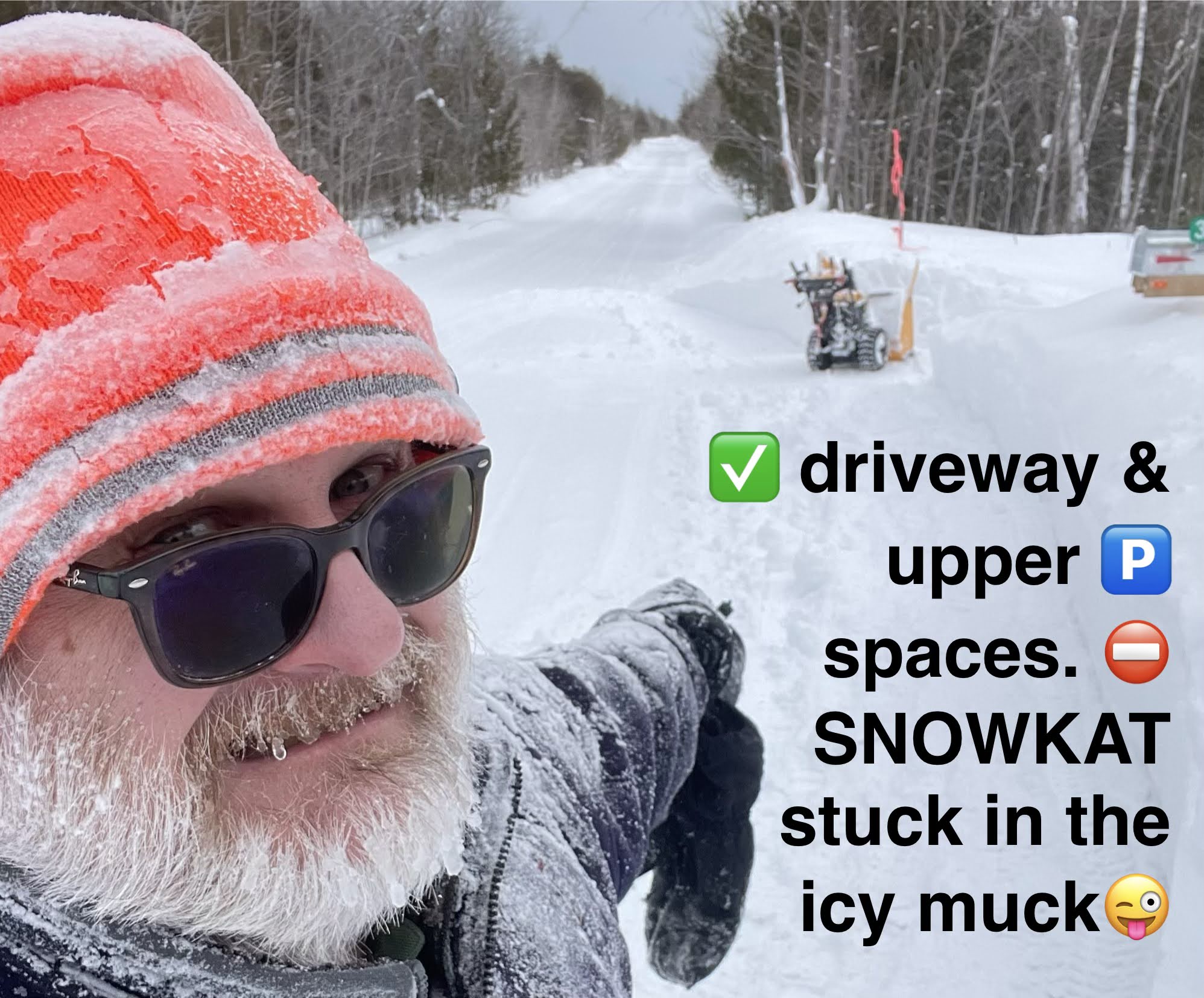 The good developments: while TS cleared safe passages around the home’s perimeter, I cleared the driveway, entrance, mailbox access, and most of the parking spaces.