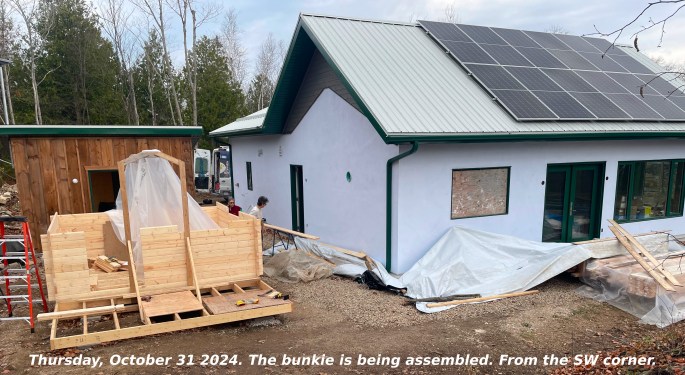 let's start with our sawmill structures trials and tribulations. PN's still optimistic. When the system works, the walls clicks into place. When I'm really unlucky, I get cracks. This is NOT standard residential kit. I'll call S/S if we discover a really kacked board. Click on the image for more detailed woe & metacaptions. And … Continue reading Sunday, November 03, 2024 Farm Update